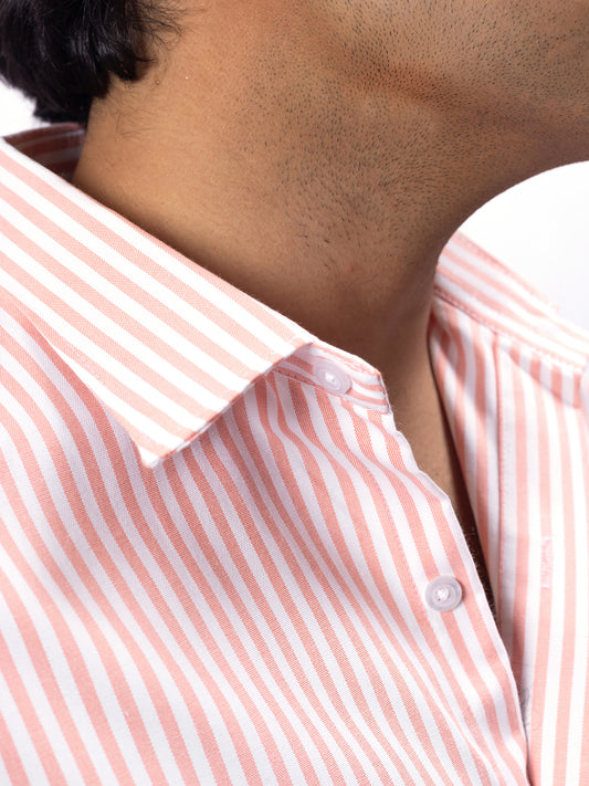 Melange Pink Striped 100% Oxford Cotton Shirt