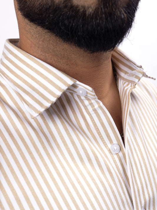 Mocha Brown Striped Oxford Cotton Shirt & Black Linen Pant Regular Fit Combo